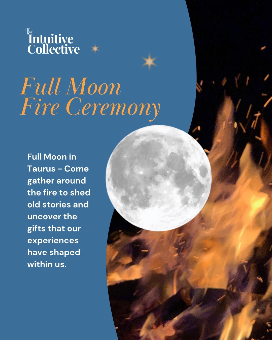 description: Join The Intuitive Collective for an evening of ritual, reflection, and release under the energy of the Taurus Full Moon. Together we come to the fire to shed what no longer belongs to us β old stories, pain, and patterns. Through the sacred act of release, we reclaim our energy and uncover the gifts that our experiences have shaped within us. The fire reminds us that from every ending, something new and powerful is born. This full moon ritual is an invitation to ground into your body, speak your truth, release what no longer fits, and embody your most authentic expression in community. Agenda & What to Expect: Welcome & Introductions, offerings to Pachamama stick for healing of the Earth, Land acknowledgement & Prayer to open sacred space. Prepare & start the fire! Fire Gazing & Grounding Meditation to arrive, connect to your higher self, fire and align with the moonβs energy β led by Carly M. Renee (Founder of The Intuitive Collective) Cosmic Weather Report on the Taurus Full Moon and how it guides intention-setting by Julia King Boone of The Growing Intuitive Intention Setting & Offerings to the fire to transmute the energy of our issue, into the energy of light and heat, that we may take in and use it to nourish ourselves Reflection + Sharing β Speak your truth β being held and supported in community Closing Prayer & Takeaways This will be located in a backyard with π₯ Fire pit.