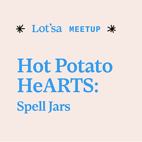 description: Lot'sa is excited to welcome back Hot Potato Hearts to host a witch-themed crafting meetup, aka Hot Potato HeARTS, in our space. Join us in crafting spell jar recipe cards & decorating jar. We will have a resident witchy gal at the event to answer all your questions about spell jars along with a catalog of the most popular spell jar recipes. No spells will be composed at the event we are just giving you the blueprint to finish at home yourself. How It Works: We will open the night with a quick card tutorial & group introduction Supplies will be provided by use, but feel free to bring something from home if you'd like (i.e. any collaging materials) Supplies we will have: magazines, pens, markers, crayons, scissors, glue sticks, colored paper, hot glue, modge podge, jars Tickets are PWYC at $10 + $20, they will also be available at the door based on capacity The event runs from 6:00–9:00pm, come when you can & leave when you need ***Photos & video will be taken at the event for the promotion of future events, if you are uncomfortable with this just let us know the night of & Katie will exclude you from all content.