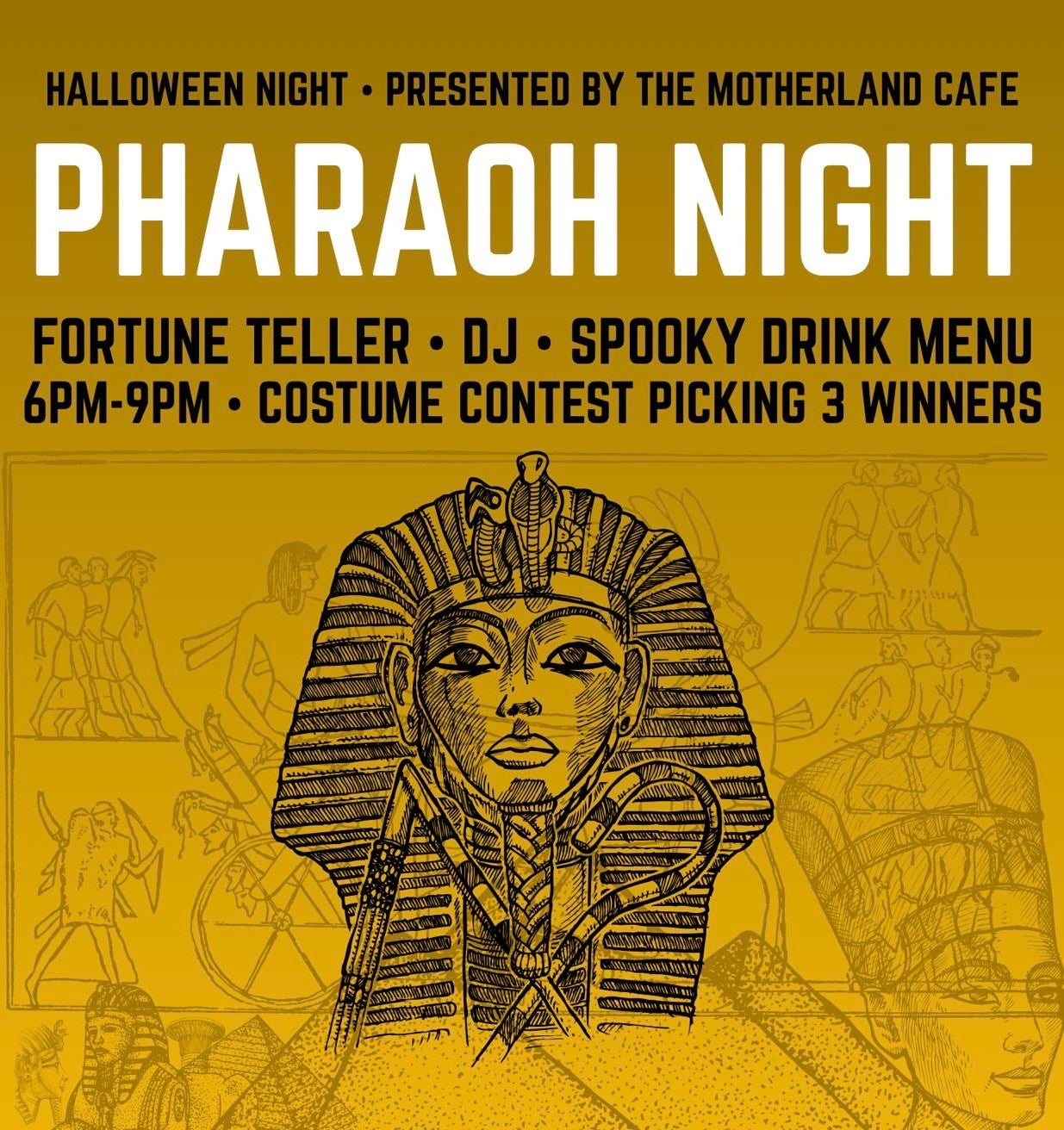Kick off Halloween at Pharaoh Night hosted by Motherland Cafe!