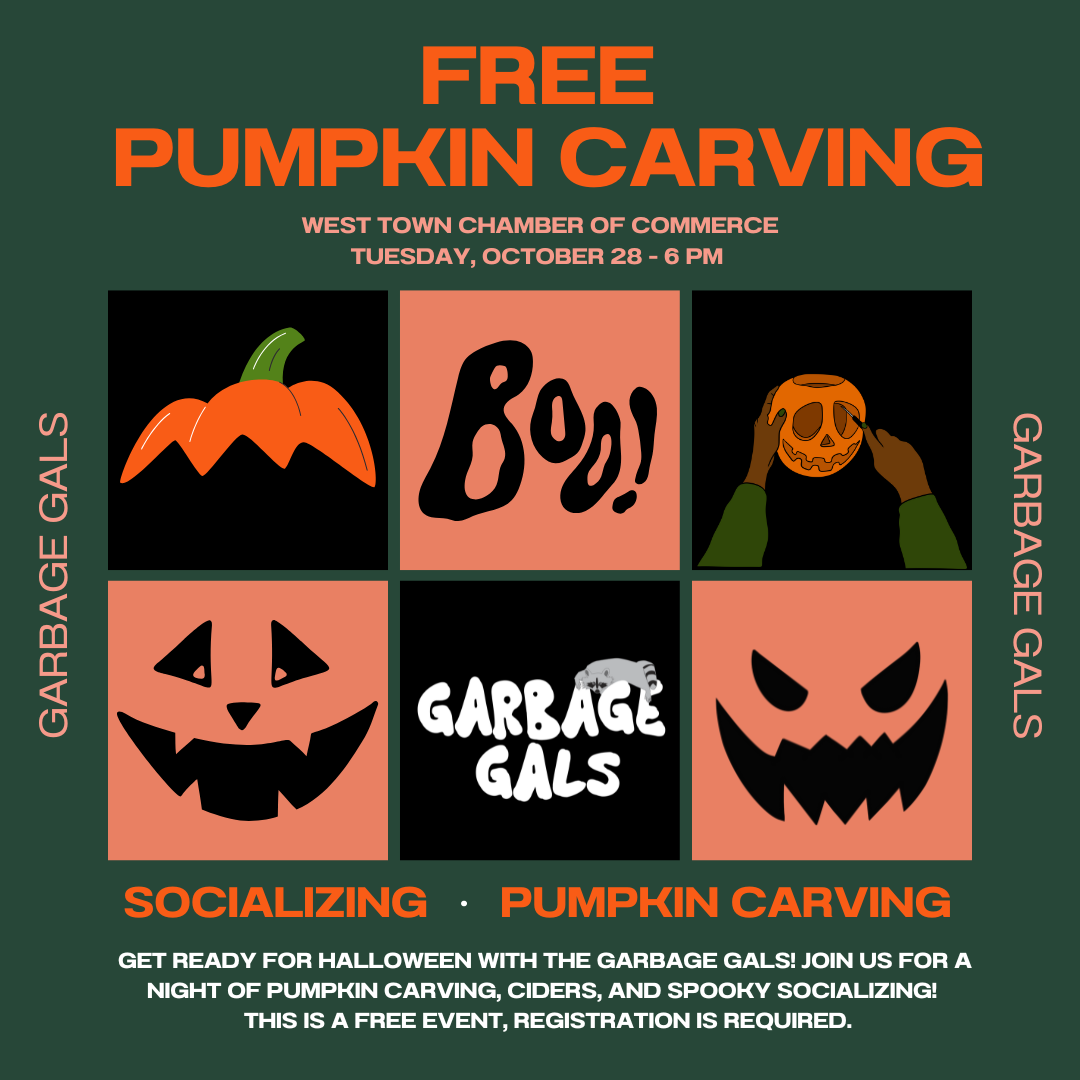 description: Come celebrate pre-Halloween with us and carve a pumpkin! Everyone will be provided their own pumpkin to carve and take home. We will also have snacks and cider. Depending on the weather, this event will either be outdoors in our founders backyard in Wicker Park neighborhood or indoors at the West Town Chamber of Commerce.