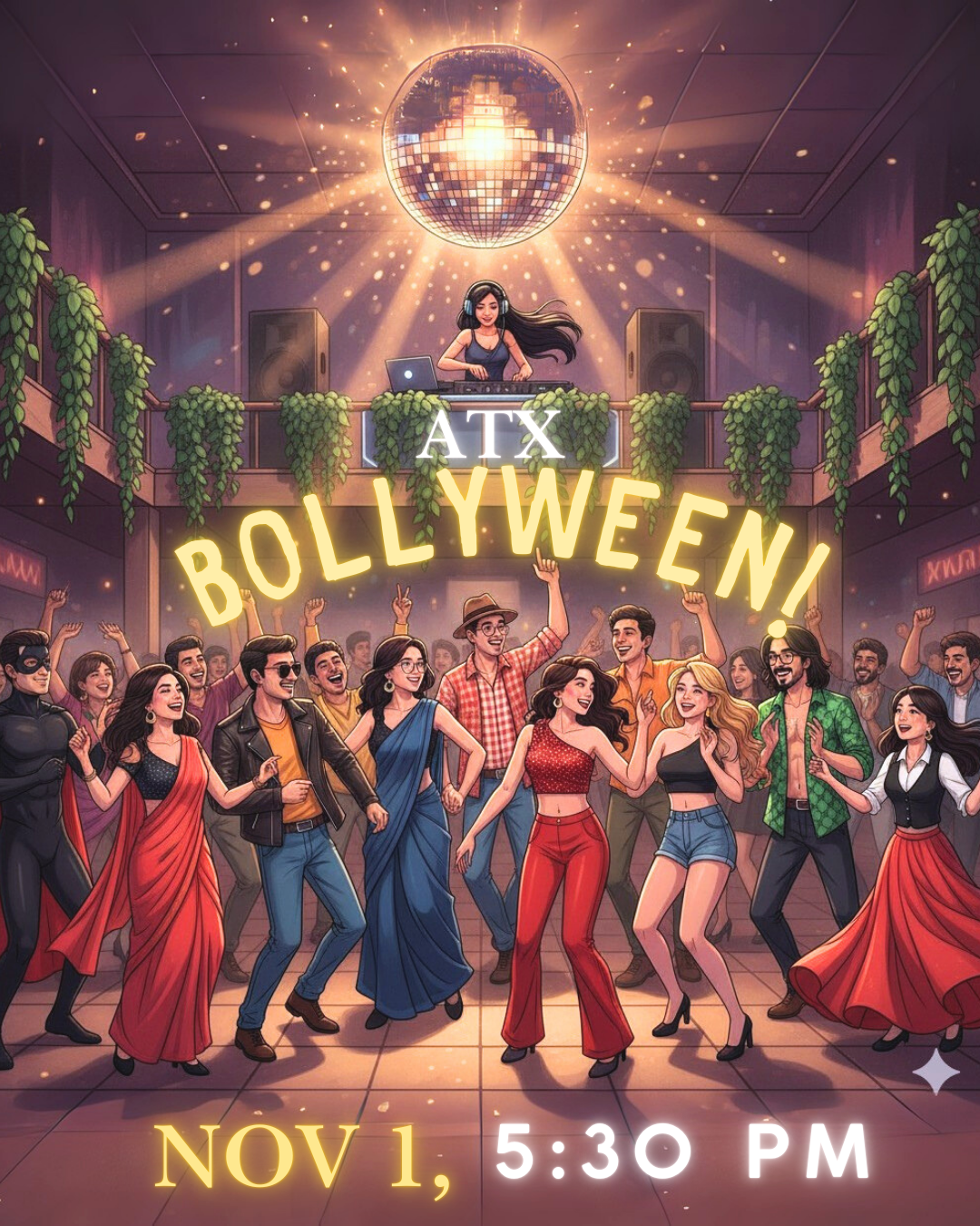 description: 🎬 Introducing ATX Bollyween 2025 ✨ Austin’s most stylish Halloween twist is here! 🥂 👻 Step into the shoes of your favorite Bollywood character and dance the evening away to a Bollywood DJ at a chic café bar in the heart of Austin. The full bar menu of drinks is available at the location for purchase. We will have photographers and content creators clicking at the venue. Look forward to seeing you in your Bollywood character outfit. 🎬