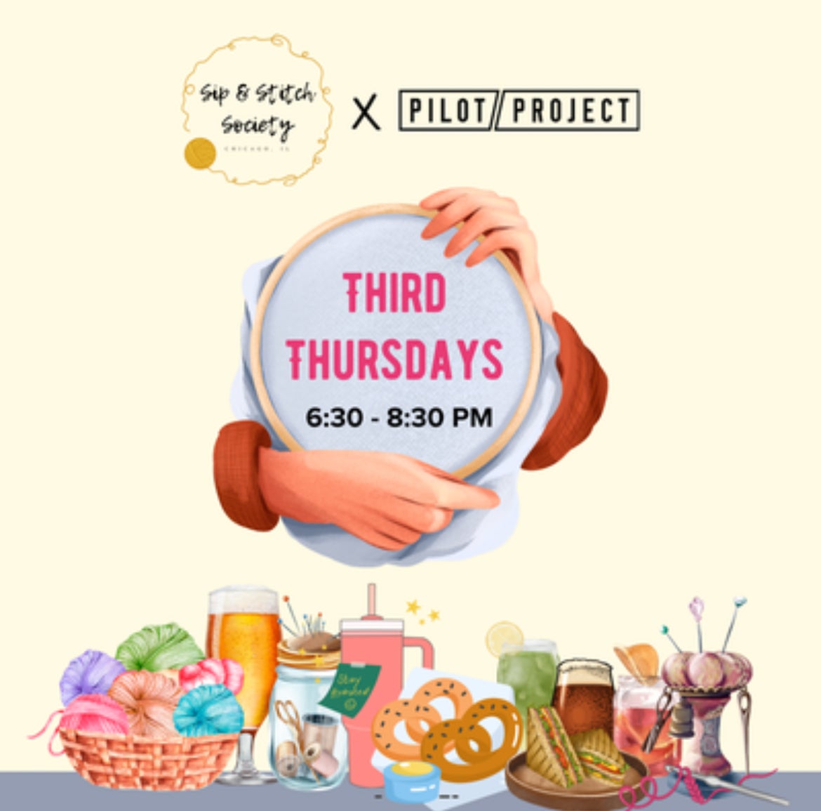 description: We're back at Pilot Project's Logan Square taproom for stitching, socializing, and soft pretzels as big as our faces! Bring your craftivity of choice (or don't, maybe your vibe is sip-only) for a cozy evening with fiber friends. Food and NA drink options are available!