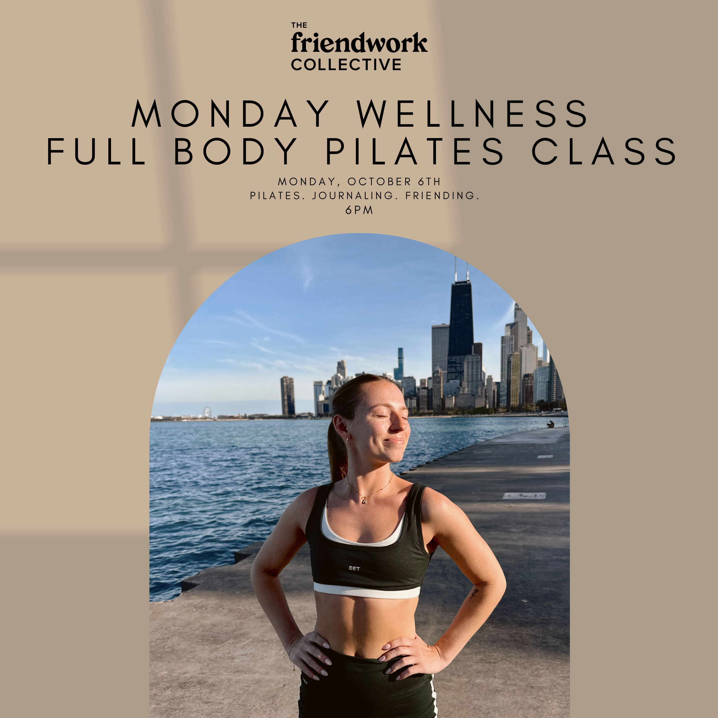 description: Move, reflect, and connect ✨ Join us for a 45-minute Pilates flow that’ll leave you feeling strong and refreshed. After class, we’ll slow things down with a short journaling session to reset your mind, followed by casual friending time — think good vibes, conversation starters, and meeting new people. Come for the workout, stay for the community. No experience needed — just bring your best self. Mats will be provided, but you are welcome to bring your own. Please ensure to sign the waiver prior to class, and email it to ashley@thefriendworkcollective.com