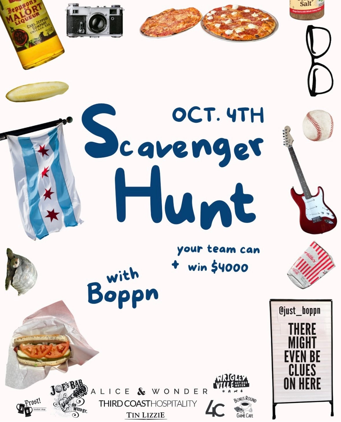 description: It’s scavenger hunt season!!! On October 4th, you have the excuse to try all the Chicago activities that you have always wanted to do, maybe have a few bevys and a dog (dragged through the garden, of course), while you bop around and complete tasks with your team. Starts at Tunnel and ends with an after party at Joe’s on Weed. Winning team goes home with $4000. Plus it’s a great way to make new friends and try new things. Cheers!