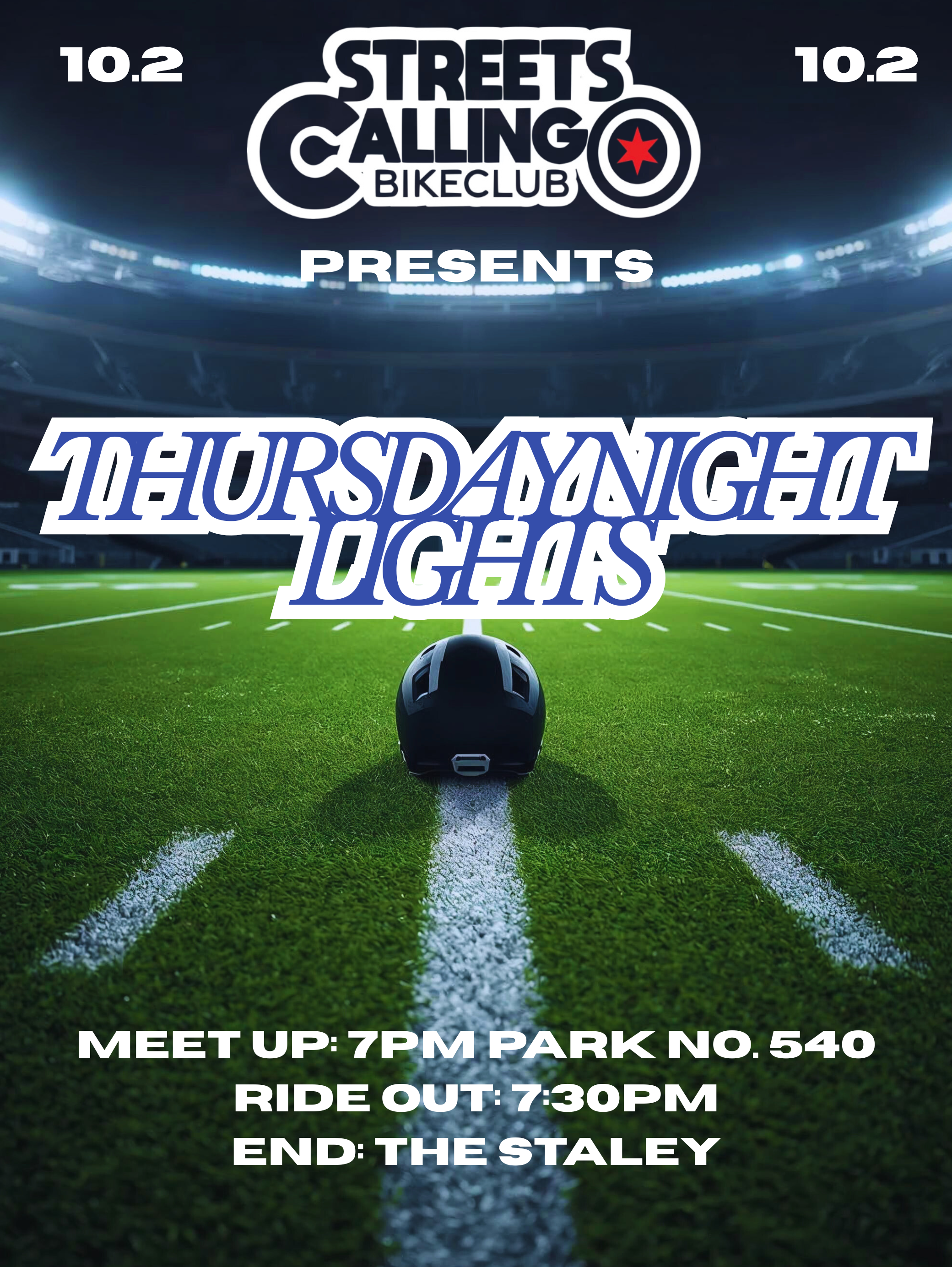 description: Meet up: 7pm Park No. 540 (2420 S. Dearborn) Ride out: 7:30pm End: The Staley (1736 S. Michigan)