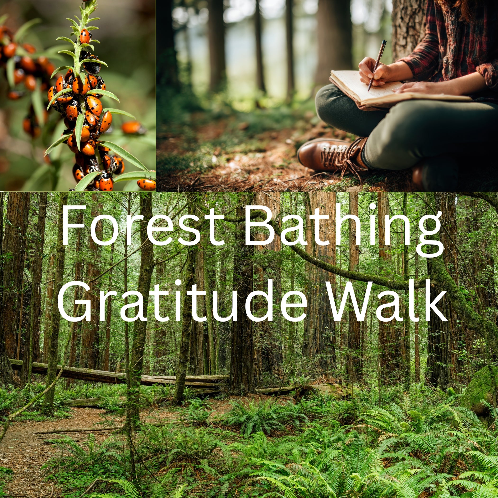 description: Forest Bathing & Gratitude Walk in the Redwoods Join us for a slow, sensory walk through the redwoods combining Japanese shinrin-yoku (forest bathing) with gratitude practice. We’ll breathe in forest aromatherapy, move mindfully along the Stream Trail, and take moments for reflection and stillness—perhaps alongside clusters of overwintering ladybugs. Studies show forest bathing lowers stress, boosts immunity, and lifts mood. Combined with gratitude, it deepens calm, creativity, and connection. Schedule 1:00 PM – Opening circle 1:15 PM – Mindful walk & gratitude prompts 1:45 PM – Sit-spot reflection 2:15 PM – Return walk & integration 2:30 PM – Closing tea circle (herbal tea provided) Details The Ladybug Factor While this trail is known for hosting overwintering ladybug colonies, these wild creatures appear on their own schedule. In forest bathing, we practice "acceptance of what is" - finding peace and gratitude whether we encounter thousands of ladybugs, a few, or none at all. Perfect Pre-Thanksgiving Weekend Timing This walk falls before Thanksgiving weekend - an ideal time to combine the calming effects of forest bathing with gratitude practice. Give yourself the gift of slowing down before the holiday rush. What to Bring • Comfortable walking shoes with good traction • Layered clothing (afternoon fog/rain can roll in) • Water bottle • Small sitting pad or towel for sit-spot time (optional) • Journal and pen (optional) • Open mind and a receptive heart • Please leave your phones on silent to maintain the forest bathing atmosphere Difficulty Level Easy - 2.5 miles total with moderate elevation gain, suitable for most fitness levels. We'll maintain a relaxed pace. Leashed dogs welcome. Free parking—arrive early. Health & Safety • Trail can be muddy after rain - proper footwear is essential • Participants attend at their own risk • Please stay home if experiencing any illness symptoms • We'll maintain a pace that allows for full breathing and conversation