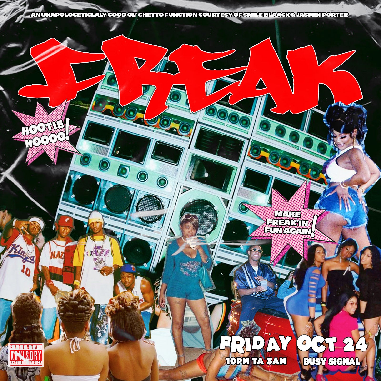 description: Fits, freaks, and bass 💦 10/24 we turning Busy Signal into a true Freaknik function 😤It’s giving Y2K chaos, costumes, & a time to be had 🫠 🚨FREE RSVP FOR THE FIRST 21 PEOPLE🚨 - Tickets soon to follow 🎟️This is a party not for the lame at heart, so please proceed with caution and hydrate 🫡😈🪩 Full event lineup drops Friday 👀 but we’ll take guesses🤭 TIME TO FREAK AHHT😛