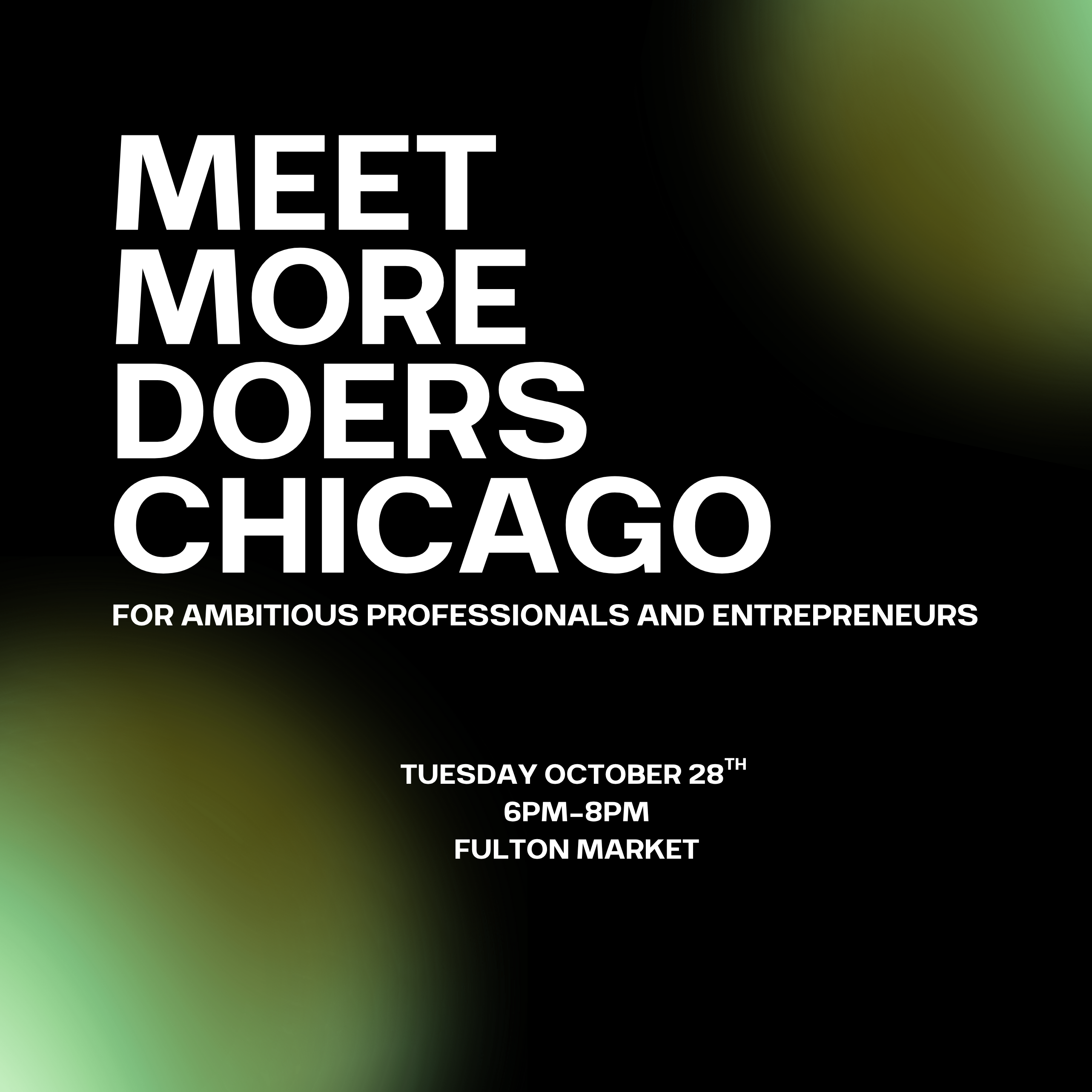 description: 👆🏼Confirm you are over 21 to attend the event on the link above. Meet More Doers Chicago is not your regular networking event. 📍Exact location will be revealed two days before the event An evening with the kind of people you wish you met more often. Corporate professionals plotting their exit strategy. Founders building the next big thing. Ambitious humans who don't just talk about ideas, but they execute. Who Should Attend: Young professionals in their growth phase Entrepreneurs and founders Anyone building something meaningful (career or business) People who value quality connections over collecting business cards The Details: Intentionally small Curated guest list (yes, there's a registration form) Elevated but approachable atmosphere Drinks included Limited spots available.