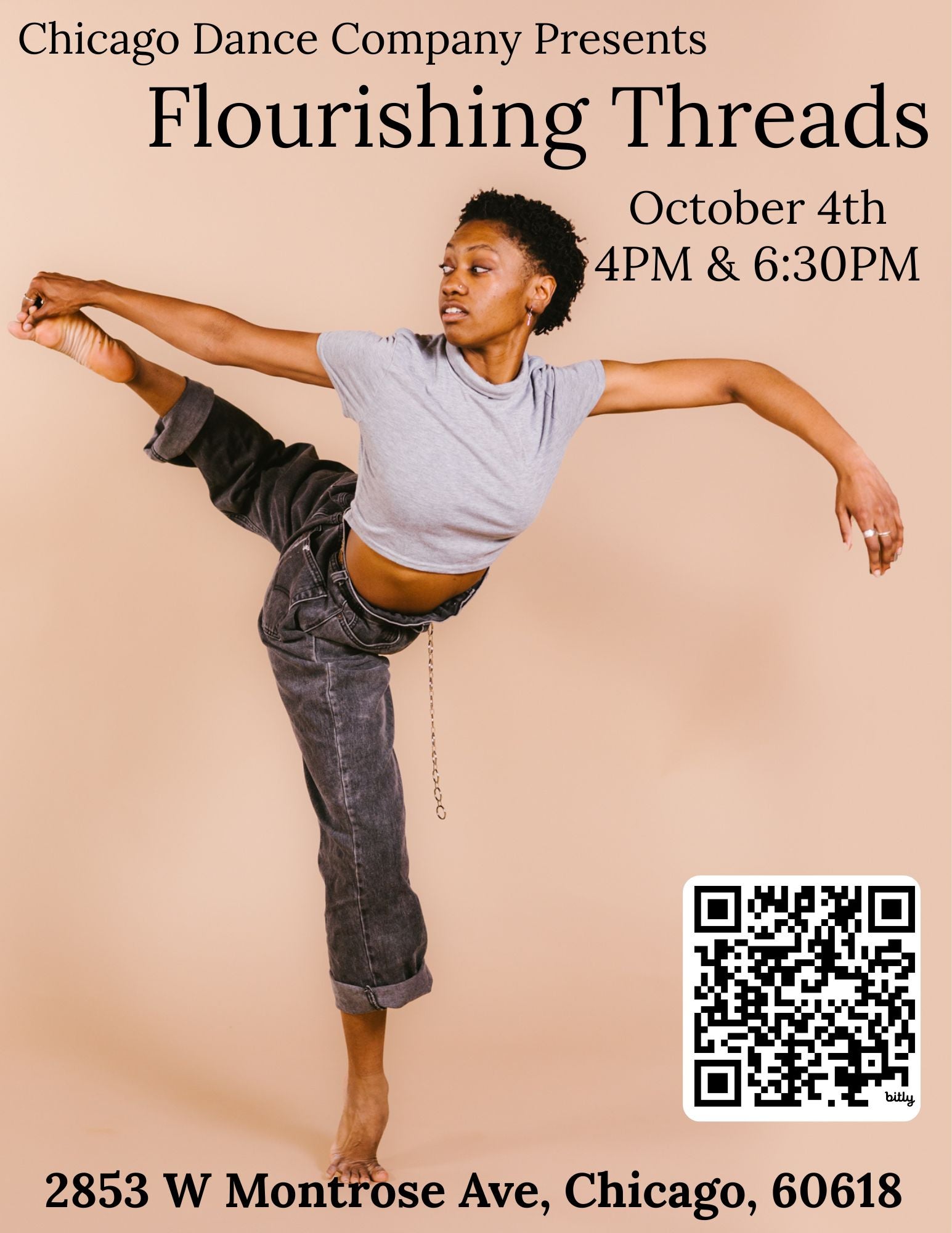 description: Flourishing Threads marks the debut production of Chicago Dance Company, a newly founded 501(c)(3) nonprofit organization dedicated to cultivating meaningful artistry and connection through dance. This evening will feature 8 world premieres of contemporary choreography, showcasing a diverse range of works by emerging and established choreographers from the Rockford–Chicago area. Together, these pieces weave unique voices, perspectives, and movement styles into one powerful evening of performance. Join us in celebrating this first chapter of Chicago Dance Company as we bring together community, creativity, and the transformative power of dance.