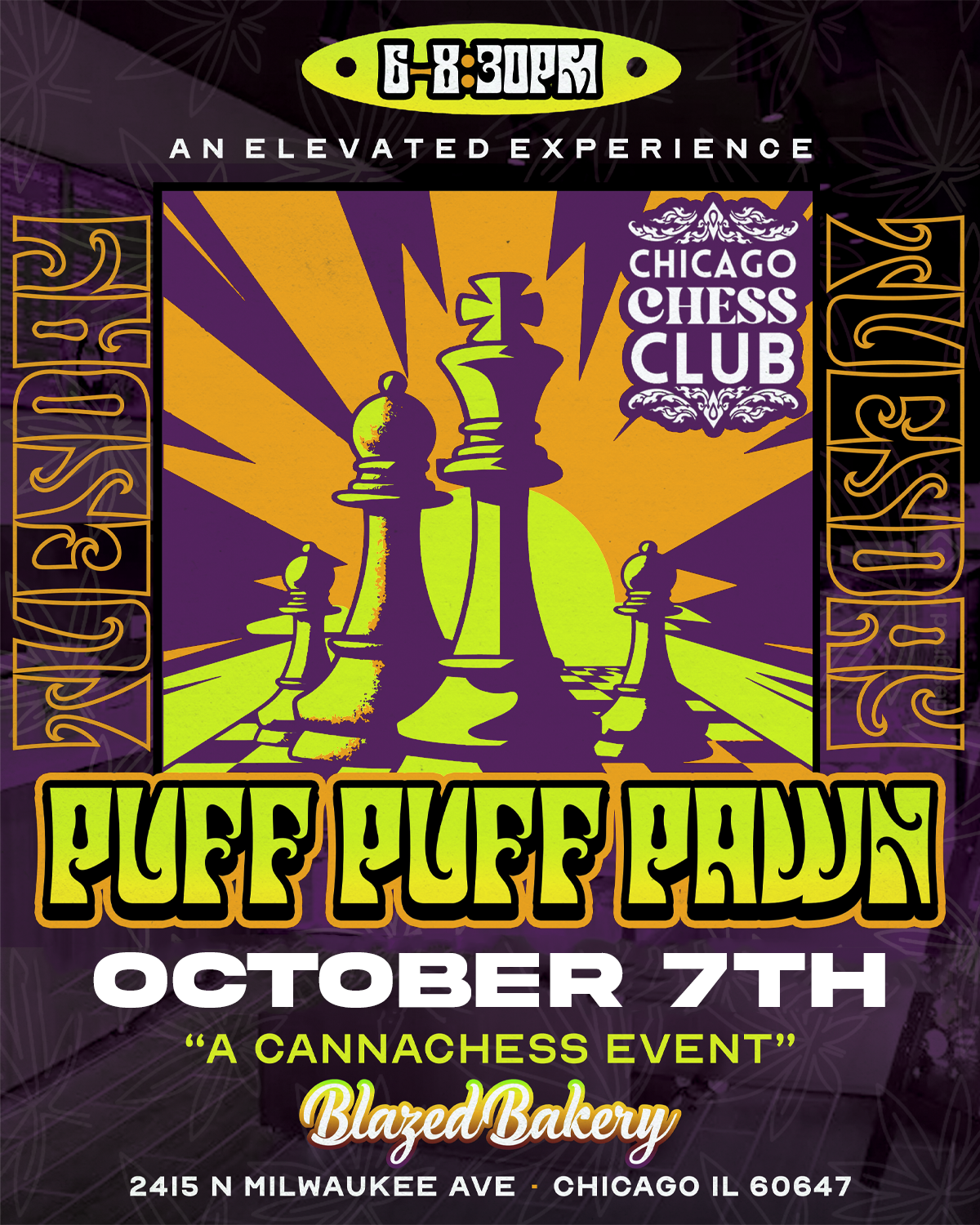 description: ♟️ Puff Puff Pawn: An Elevated Chess Night ♟️ Checkmate has never felt this lifted. 🌿👑 Blazed Bakery & Chicago Chess Club invite you to a night where strategy meets elevation. Expect vibes, laughs, and the kind of “higher thinking” that makes pawns feel like kings. ✨ The Experience: • 6:00–8:30pm → Brain games with a side of good energy • Elevated atmosphere to keep your moves flowing and your knights hopping • For seasoned pros and rookies who just call it the “horsey” • Winners brag, losers still float away happy 🌱 So pull up, level up, and see if you can plan five moves ahead when your mind is already elevated. 📍 Blazed Bakery – 2415 N Milwaukee Ave, Chicago It’s not just chess night. It’s a whole new elevation.