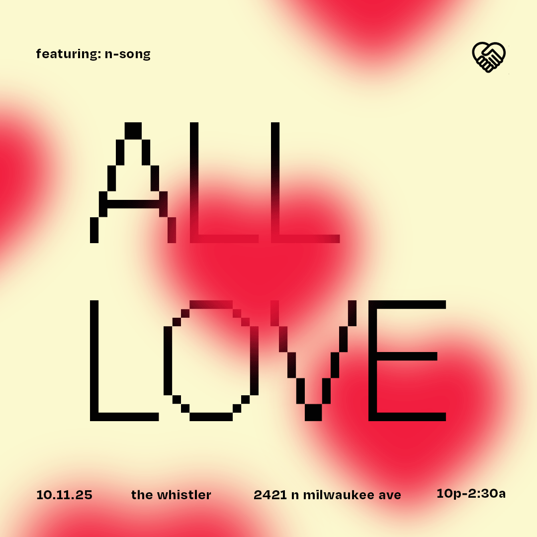 description: It’s a busy weekend for All Love ♥︎♡— we’re at The Whistler every 2nd Saturday w/ special guest N-Song! Right before we have our set at Sounds of Chicago the next day!!! Vibes are international, some hip-hop, some R&B, and more! Doors open early evening, music is on @ 10. Free af. Get there before the line starts iykyk ʕ•̫͡•ʕ•̫͡•ʔ•̫͡•ʔ•̫͡•ʕ•̫͡•ʔ•̫͡•ʕ•̫͡•ʕ•̫͡•ʔ•̫͡•ʔ•̫͡•ʕ•̫͡•ʔ•̫͡•ʔ