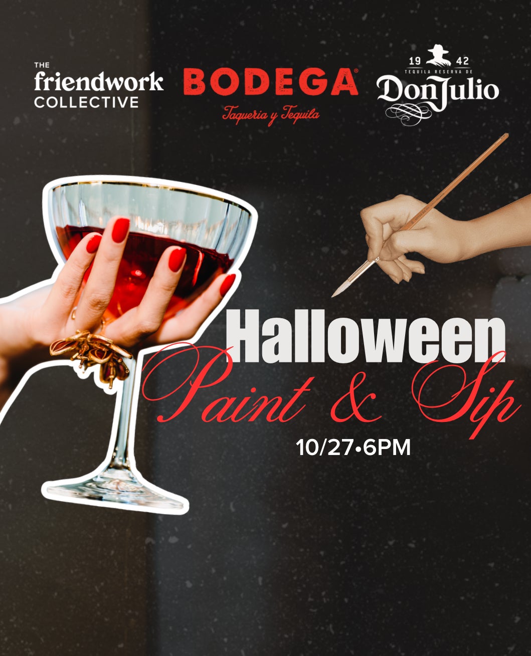 description: Join The Friendwork Collective at Bodega Taqueria & Tequila in the West Loop in partnership with Don Julio. Guests can enjoy 1 Don Julio cocktail, a giveaway item and materials to paint their own Halloween themed canvas! This is a ticketed event and is first come, first serve.
